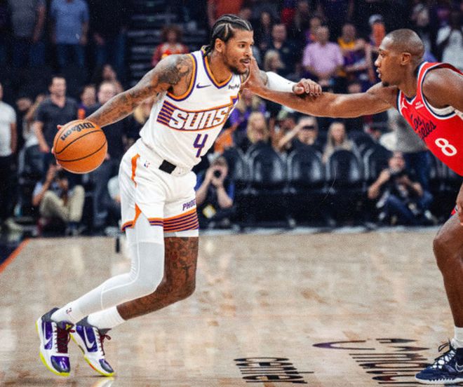 太阳本赛季场均得分排名联盟第18位,场均失分排名联盟第21位,攻防表现都处于联盟中下游,进攻终结以三分球为主,场均命中16.2次三分排名联盟第3位,内线得分排名联盟倒数第2位。