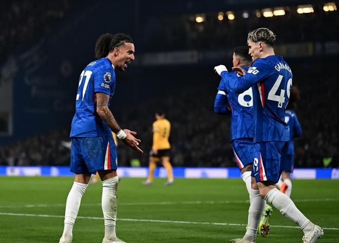 第22分钟,加纳乔左路倒三角传中被约翰斯通出击封出,恩佐外围直接凌空抽射,仍然被约翰斯通飞身神扑化解;第43分钟,加纳乔左路接球库库雷利亚直传后突破下底横敲,恩佐与佩德罗连续2脚射门都被狼队防线挡出。